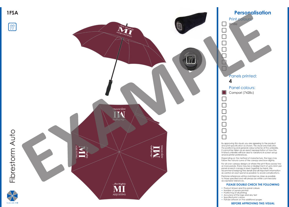 Prices shown for up to 99 umbrellas with 1 colour, 2 colour and 3 colour logo's on 1, 2 or 4 panels