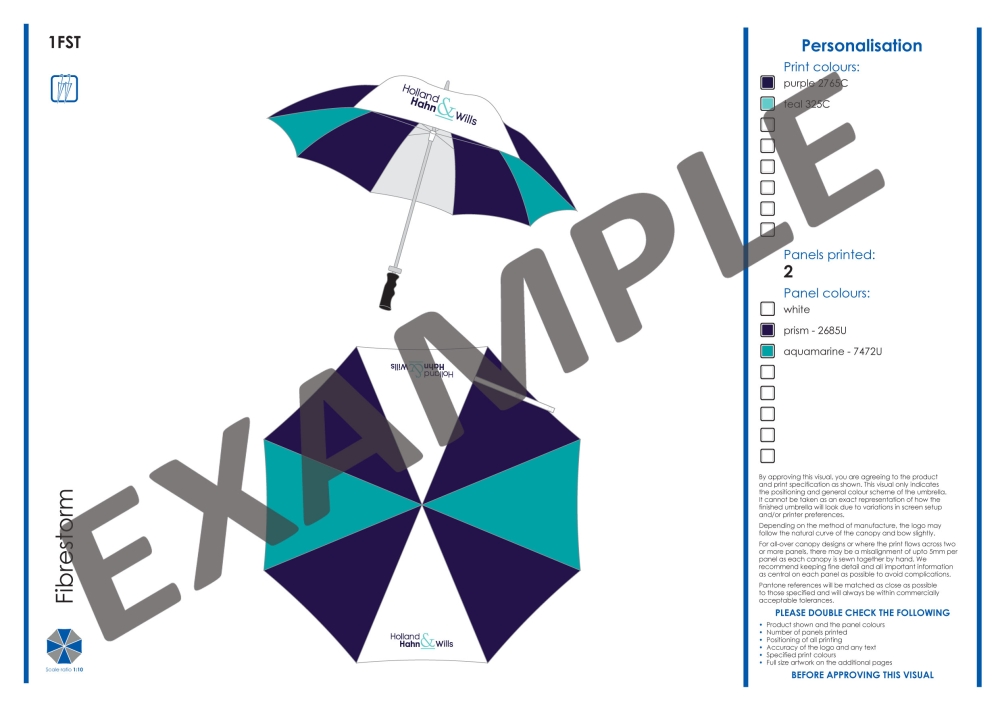 Prices shown for up to 99 umbrellas with 1 colour, 2 colour and 3 colour logo's on 1, 2 or 4 panels