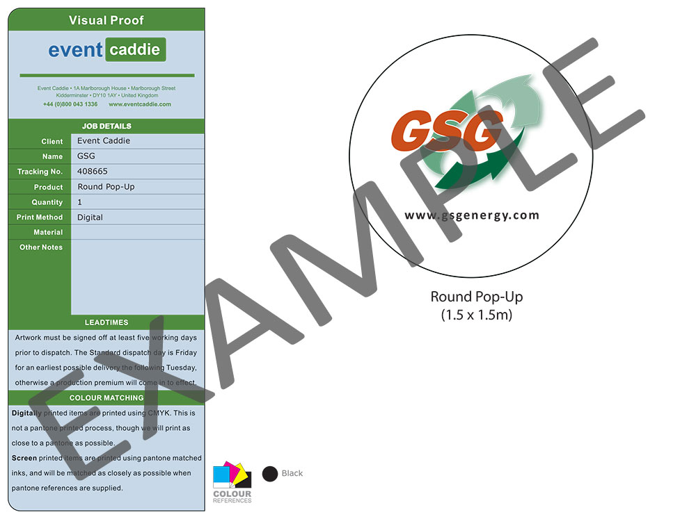 Round banners (150cm x 150cm) eye-catching portable advertising signs that can be set up and taken down within thirty seconds.