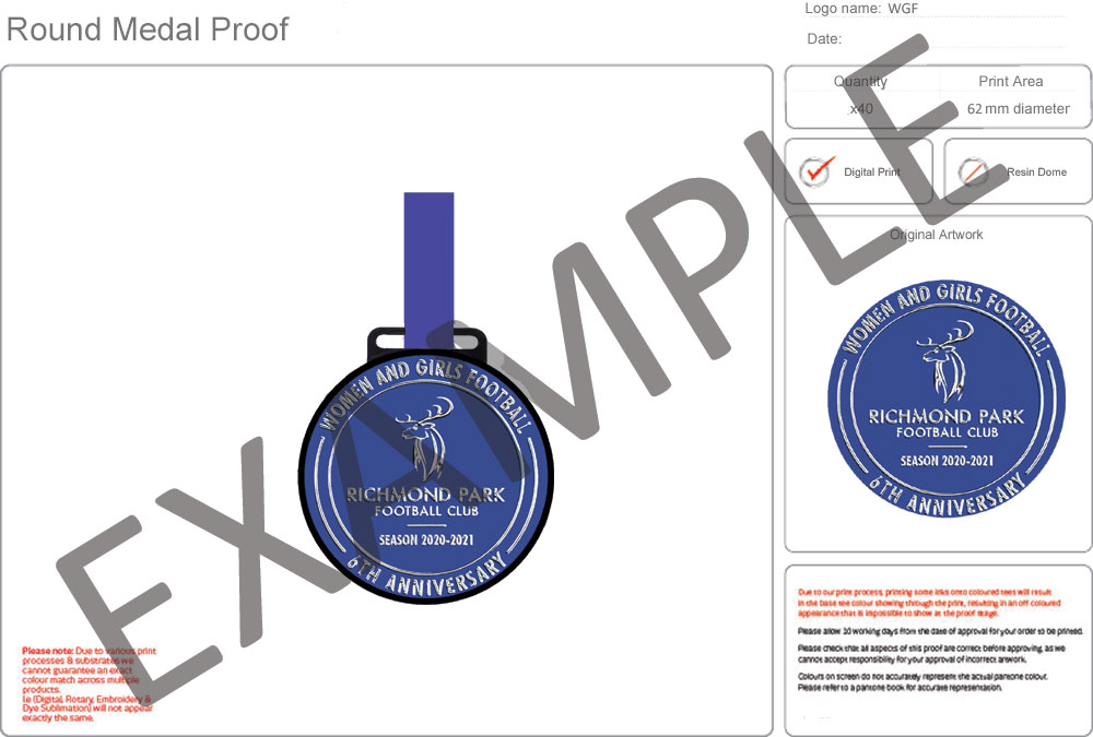 The high-quality black Nickel and the excellent quality print assures that our medals are left with an outstanding metallic finish.