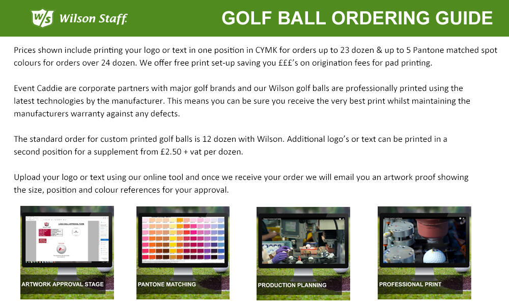 PLEASE NOTE we are authorised corporate partners with all major golf brands. The golf balls we supply are professionally printed by the manufacturer, maintaining the defect guarantee.